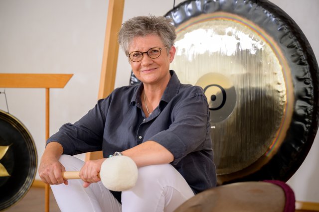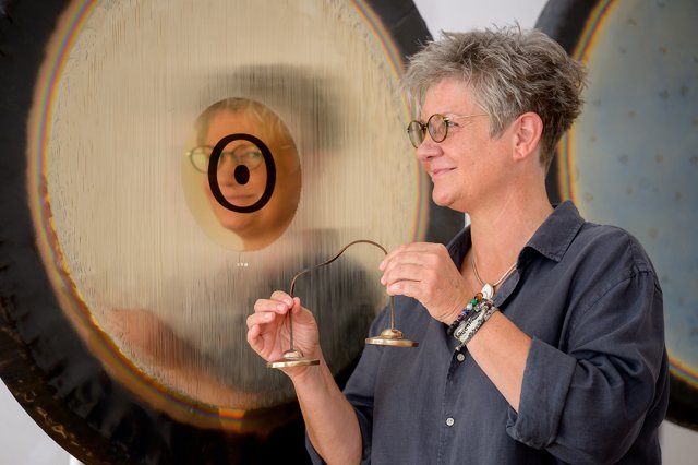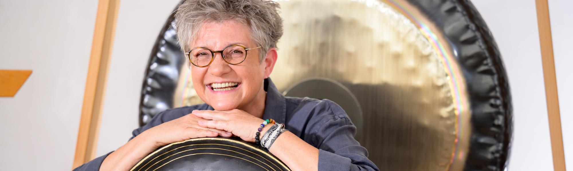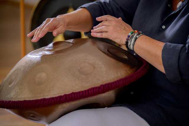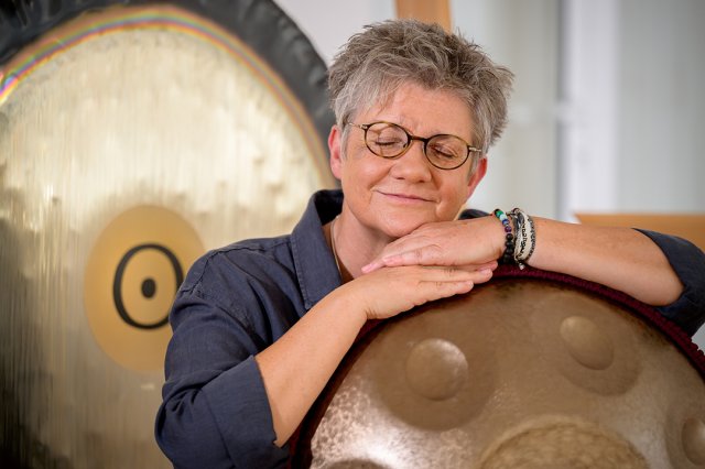 Ich bin Gongspielerin, Handpan-Musikerin und Klangmassagepraktikerin nach Peter Hess®.